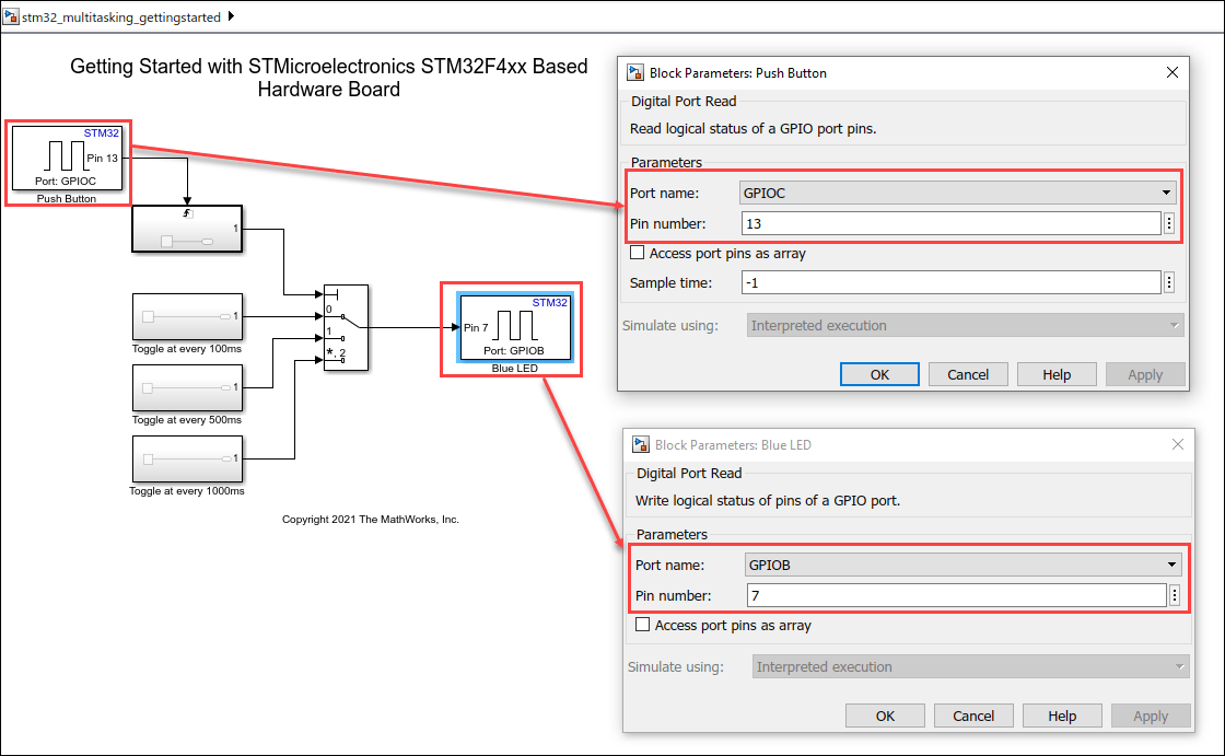 Task 3 - Configure STMicroelectronics STM32CubeMX Project in Simulink Modeling to Make LED Blink at Varying Rate