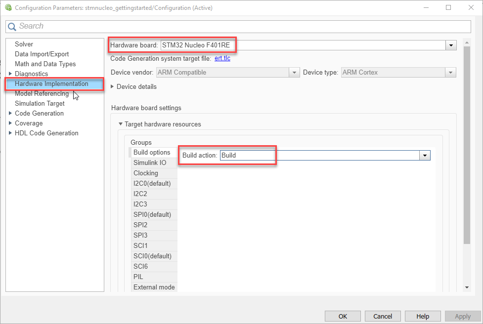 3. Go to Hardware Implementation > Hardware board.