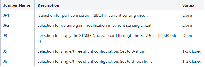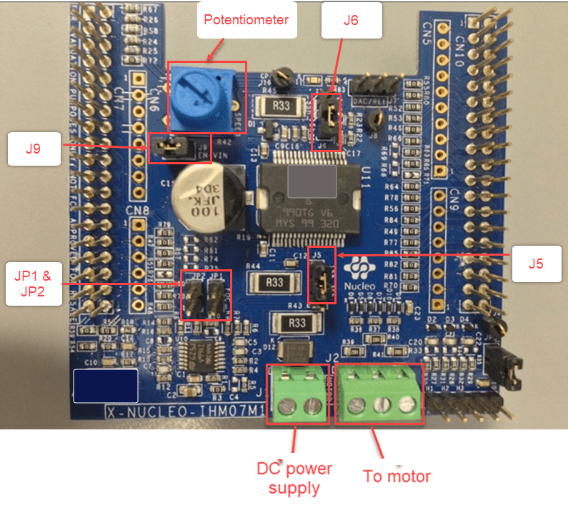 Configure the following connections on X-NUCLEO-IHM07M1 board to perform FOC to the control BLY172S-24V-4000 motor.