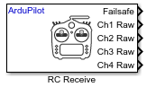 Test your RC transmitter with the RC Receive block in Simulink.