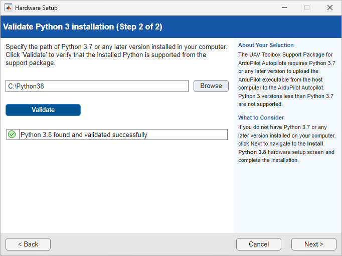 This section helps you complete the Install Python 3.8.2 Software step of the Hardware Setup process (using the Hardware Setup screens).