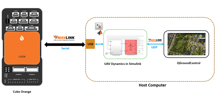 You can design the UAV Dynamics in Simulink, simulate sensor values, and use these simulations to communicate with the Autopilot in HITL mode instead of relying on third-party simulators.