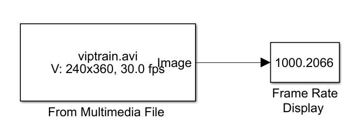 Run the model. The Frame Rate Display block displays the frame rate of the input video on the block mask. You can change the Update rate parameter in the Frame Rate Display block to control how often the block calculates the frame rate and updates the display on the block mask.
