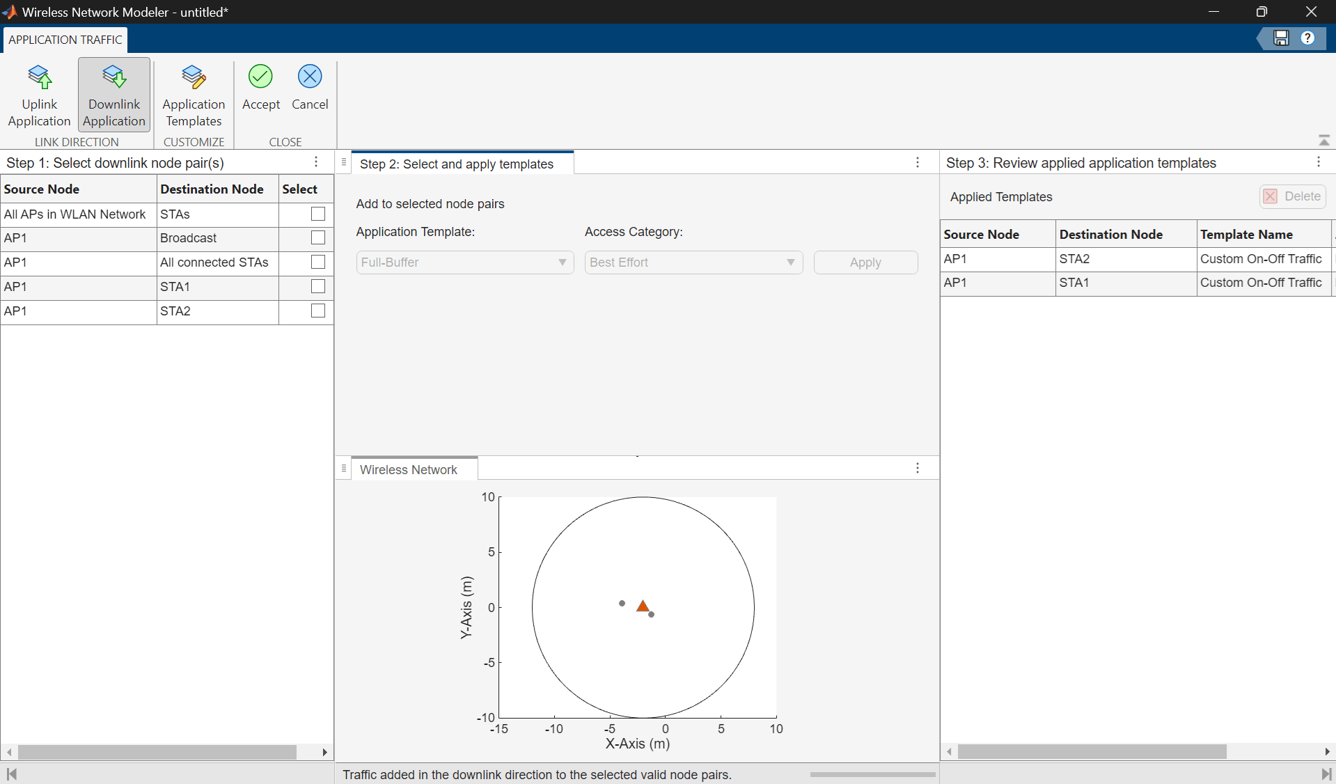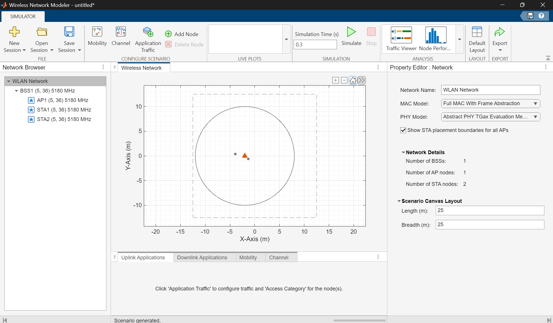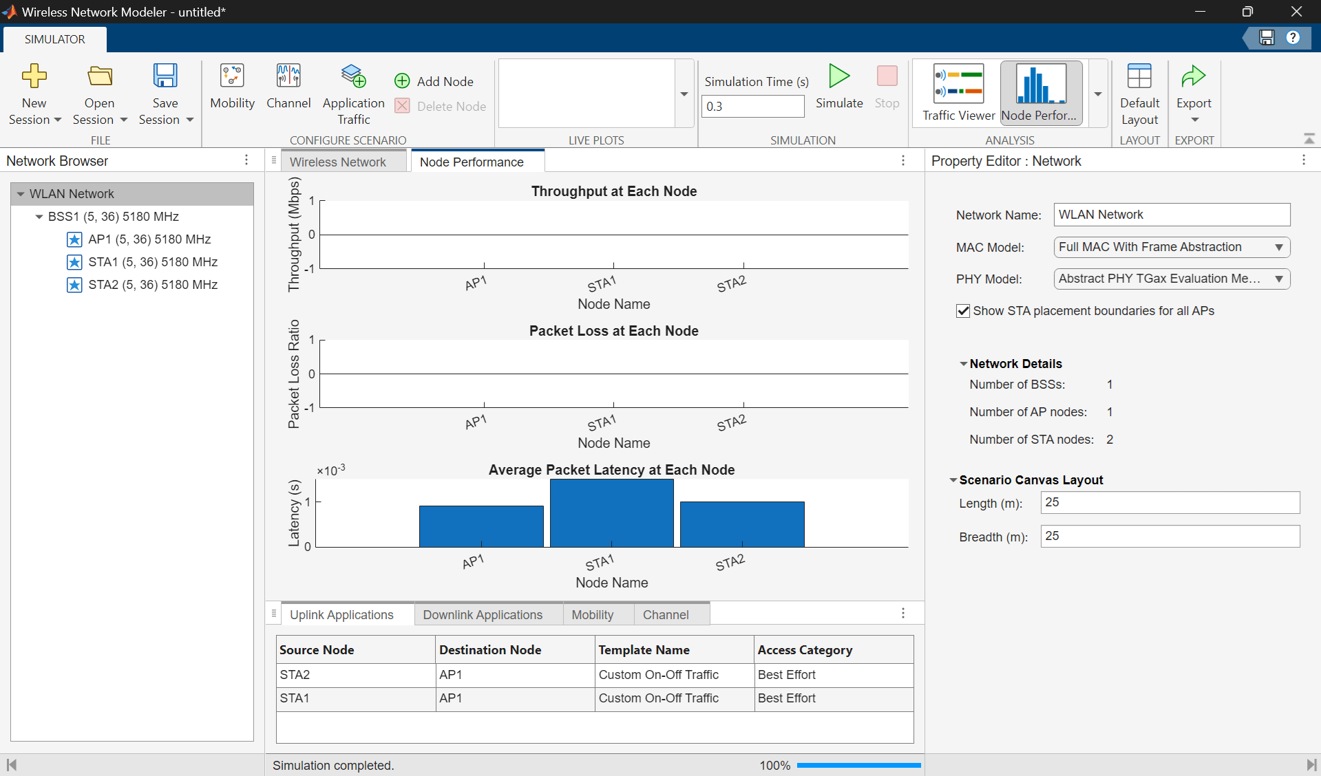 The Wireless Network Modeler app enables you to model and analyze the performance of both 5G and wireless local area networks (WLAN). Modeling 5G networks requires 5G Toolbox™, while modeling WLAN networks requires WLAN Toolbox™.