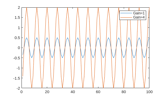 plot(real(data_Data_Out(1:100))); legend("Gain=1") hold on