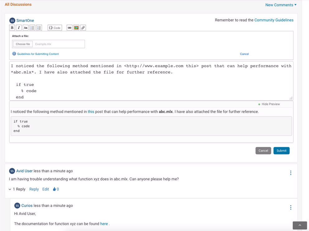 There is a new ‘Discussions’ tab where community users have conversations with the author or other community members for Q&As or general discussions. The discussions section supports threaded discussions to facilitate the conversations. We separate Discussions with Reviews so that different types of content are not mixed together.