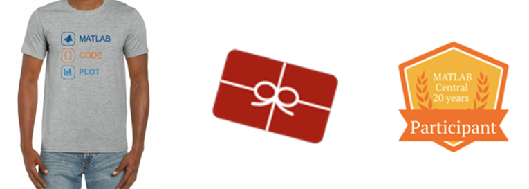 On behalf of the MATLAB Central community team, we thank you for joining our celebration of the MATLAB Central community’s 20th anniversary with us in the past 7 weeks. We hope you enjoyed these contests and look forward to seeing you in next year’s contests. Question: “What contests would you like to see next?”